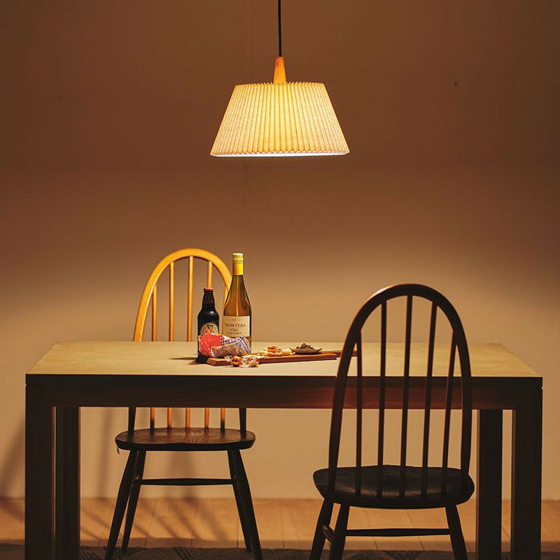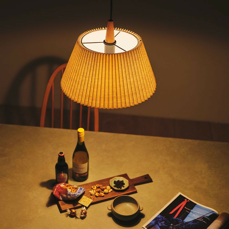 プリーツが入ったファブリックシェードはインテリア性も高く、消灯時もナチュラルで優しい表情を見せてくれます。