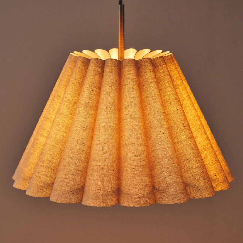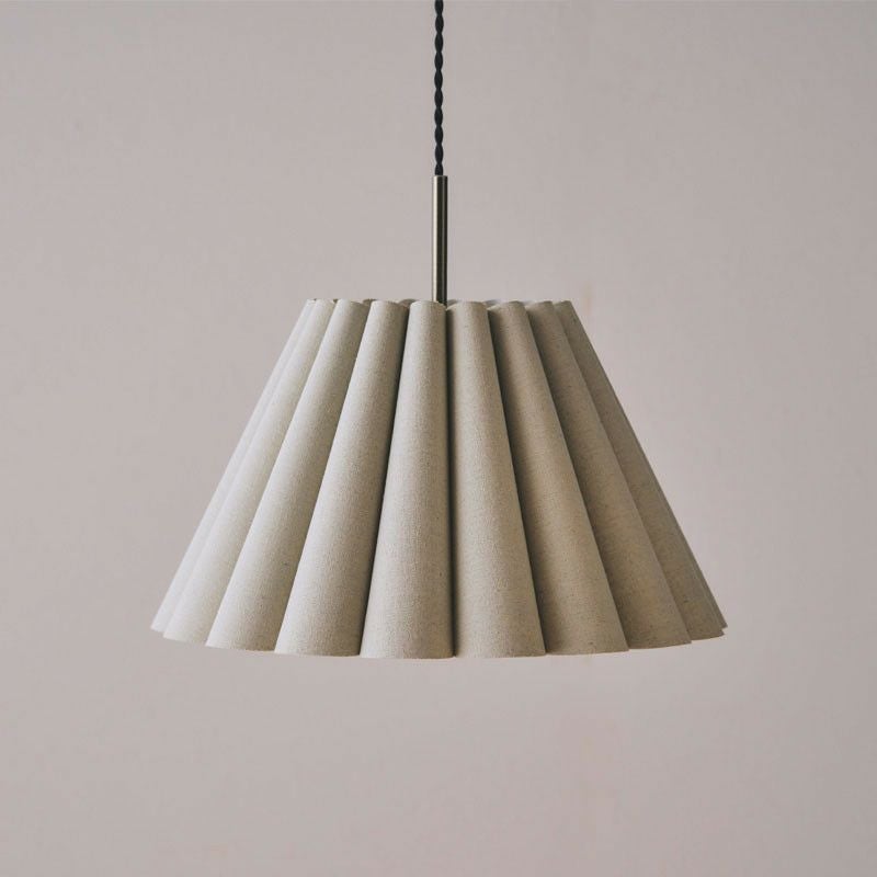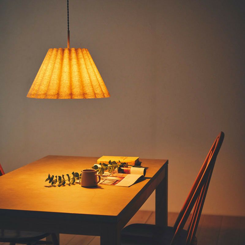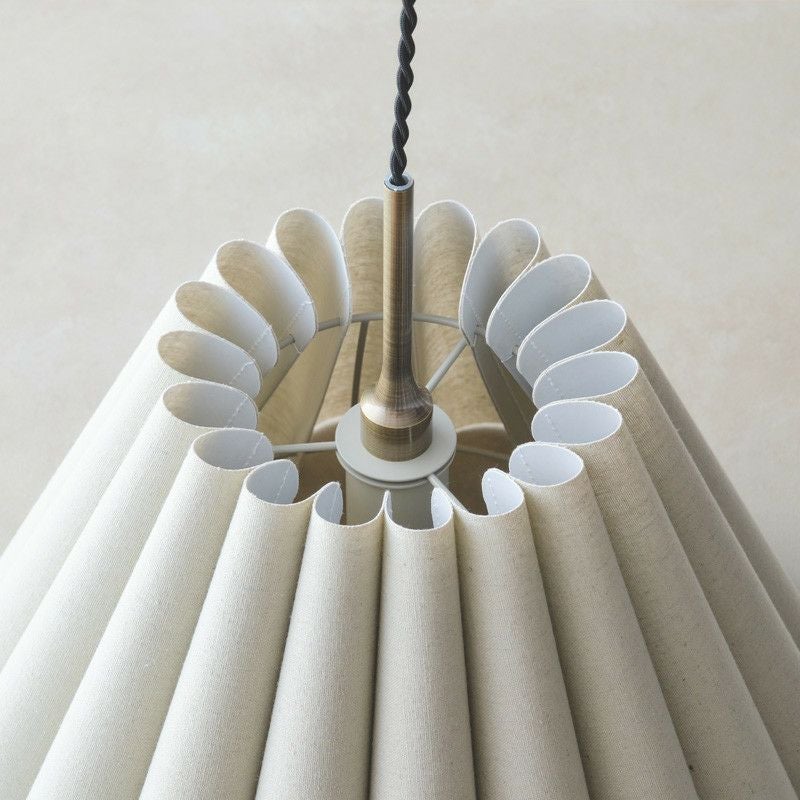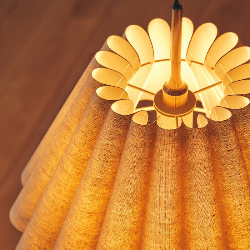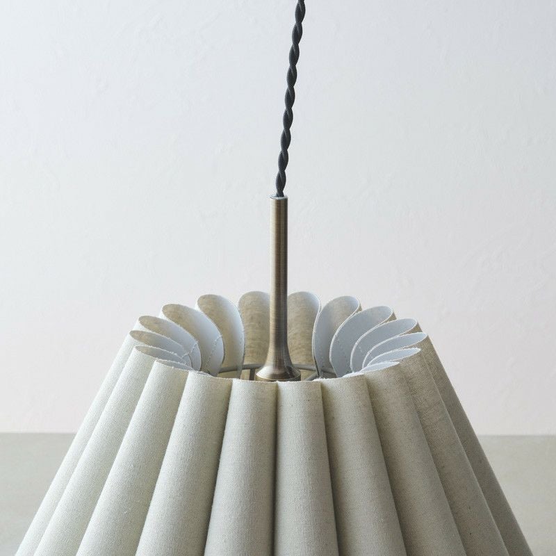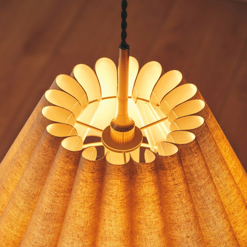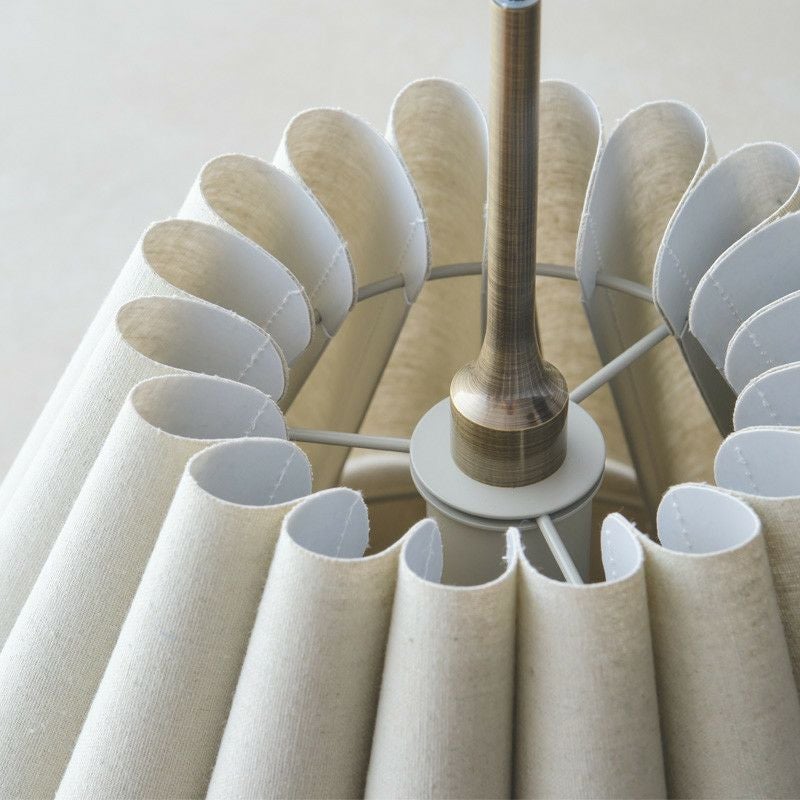 幾重も連ねたファブリック製ドレープが印象的です。ファブリックのナチュラルな素材感と、ドレープによって描かれる弧が優しい雰囲気のペンダントランプです。