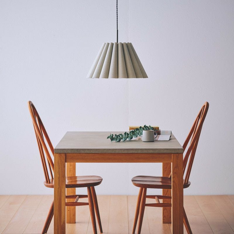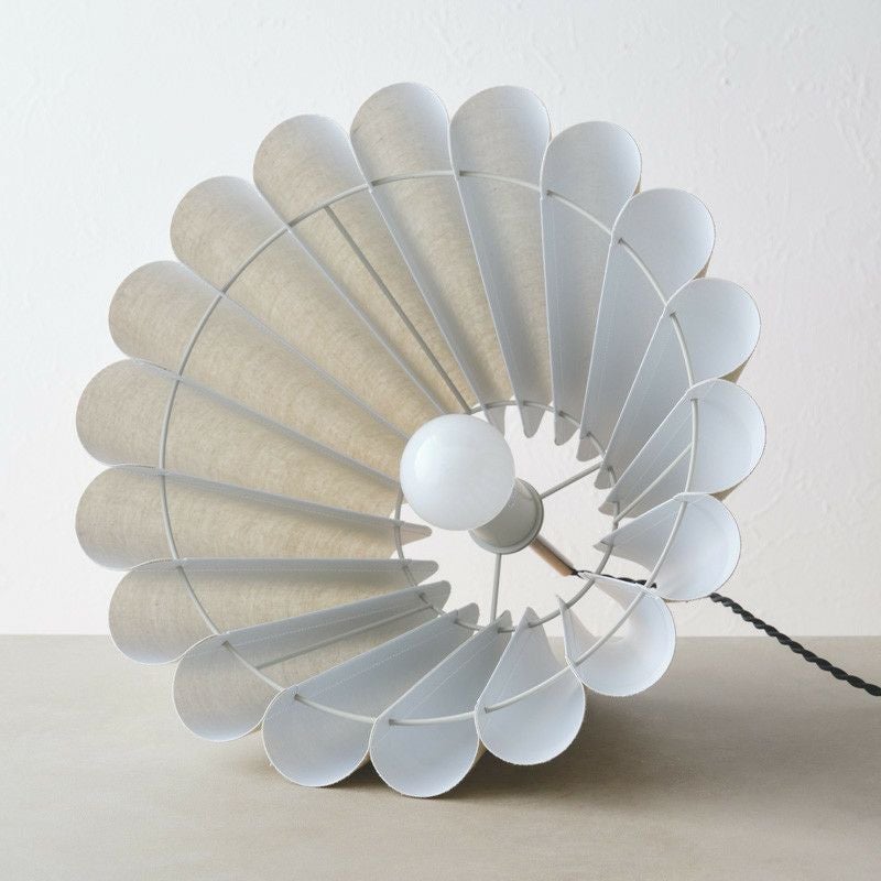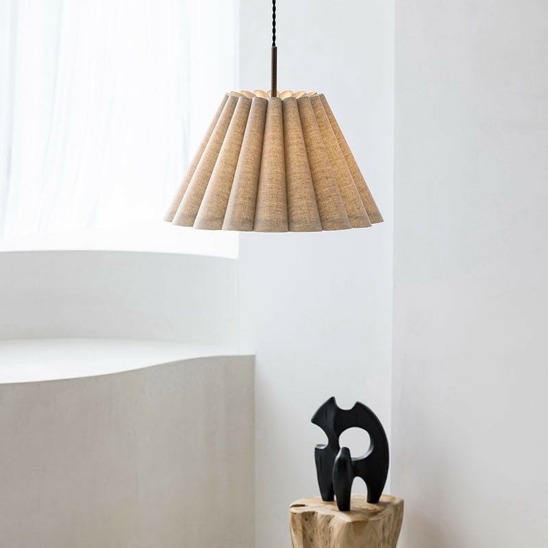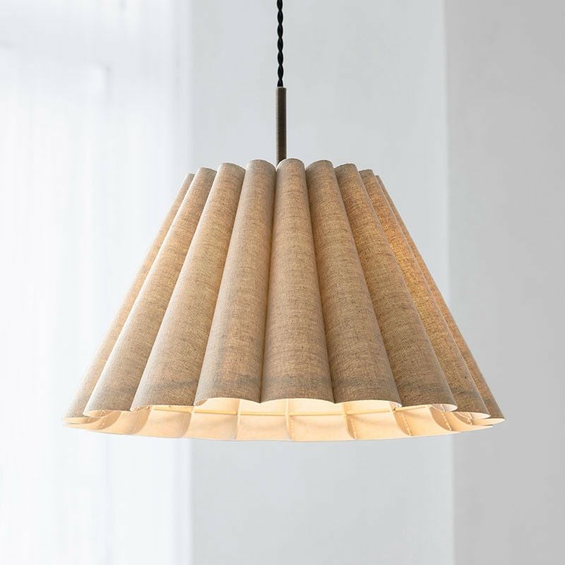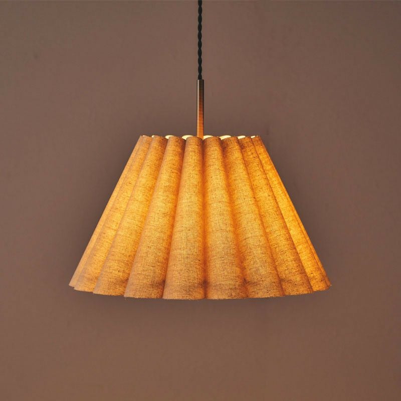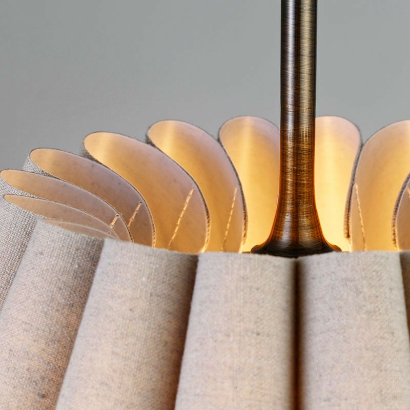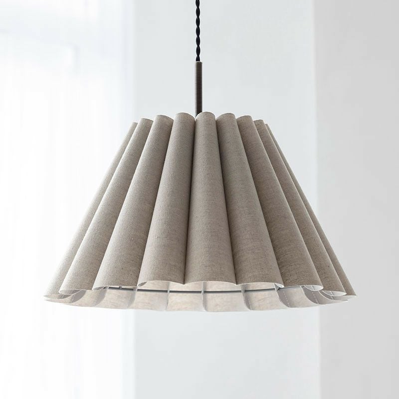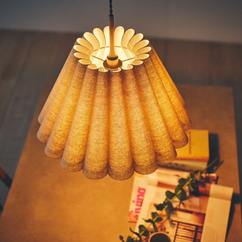 幾重も連ねたファブリック製ドレープが印象的です。ファブリックのナチュラルな素材感と、ドレープによって描かれる弧が優しい雰囲気のペンダントランプです。
