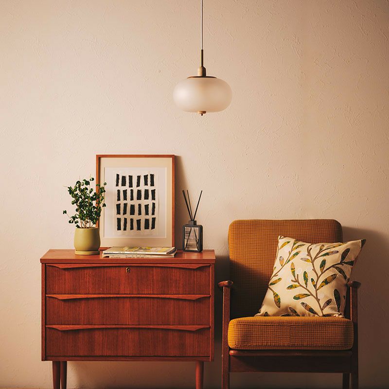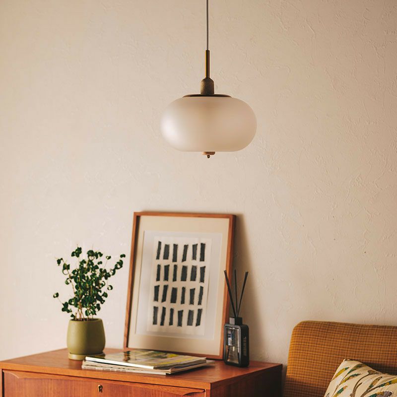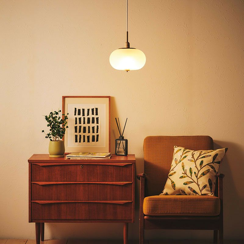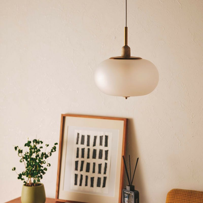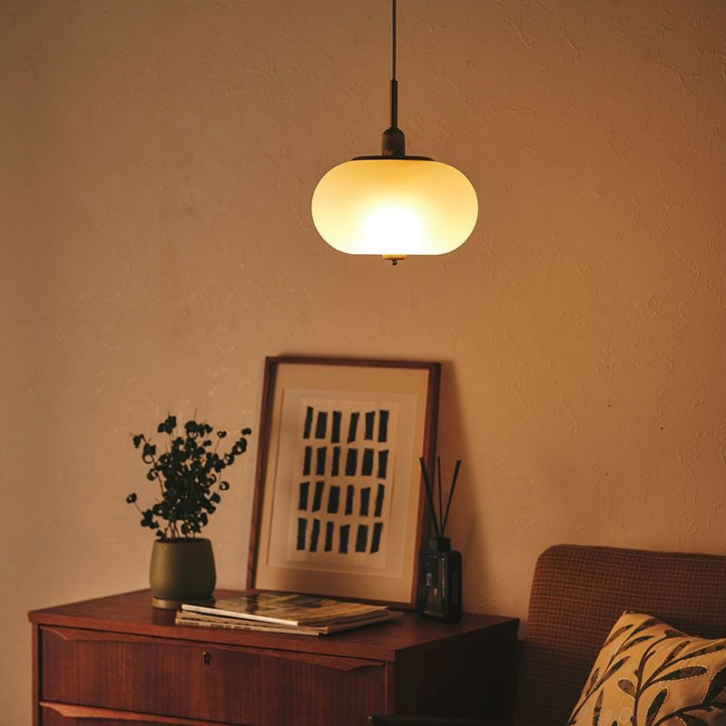 有機的な曲線によってデザインされたオーバル形状が特徴です。半透明のフロストガラスから、上品でやわらかな灯りが広がります。