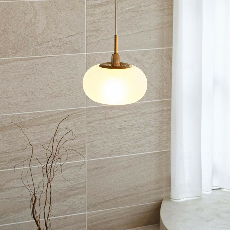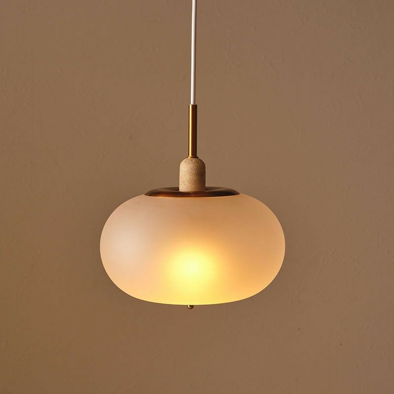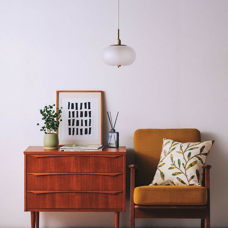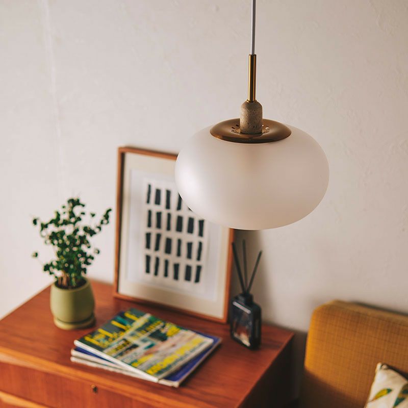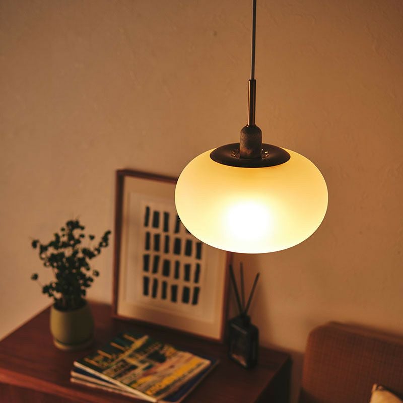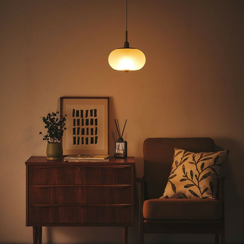 有機的な曲線によってデザインされたオーバル形状が特徴です。半透明のフロストガラスから、上品でやわらかな灯りが広がります。