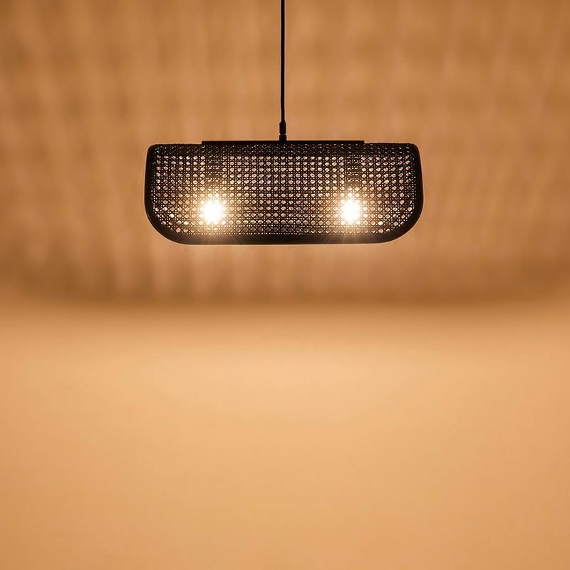 ラタンで編んだシェードが印象的なペンダントランプ(2灯)です。2色から選べます。