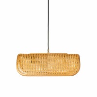 ラタン素材をひとつひとつ手でカゴメ編みにしたシェードが特徴です。フレームにはバーチ材を使い、なめらかなカーブを持つフォルムに仕上げています。