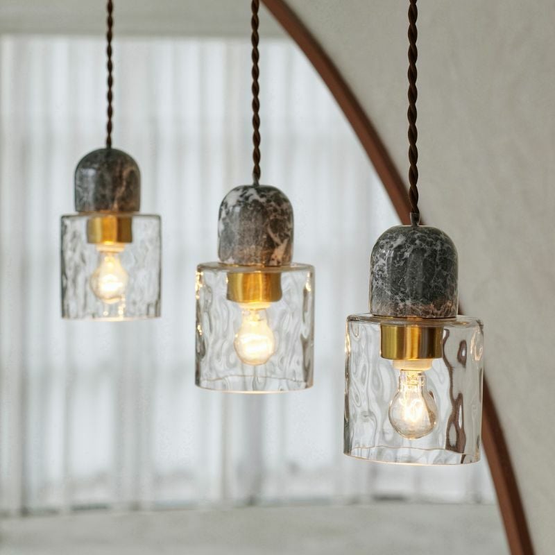揺らぎのあるガラスに大理石を合わせた、小さいながらも存在感があるデザインです。