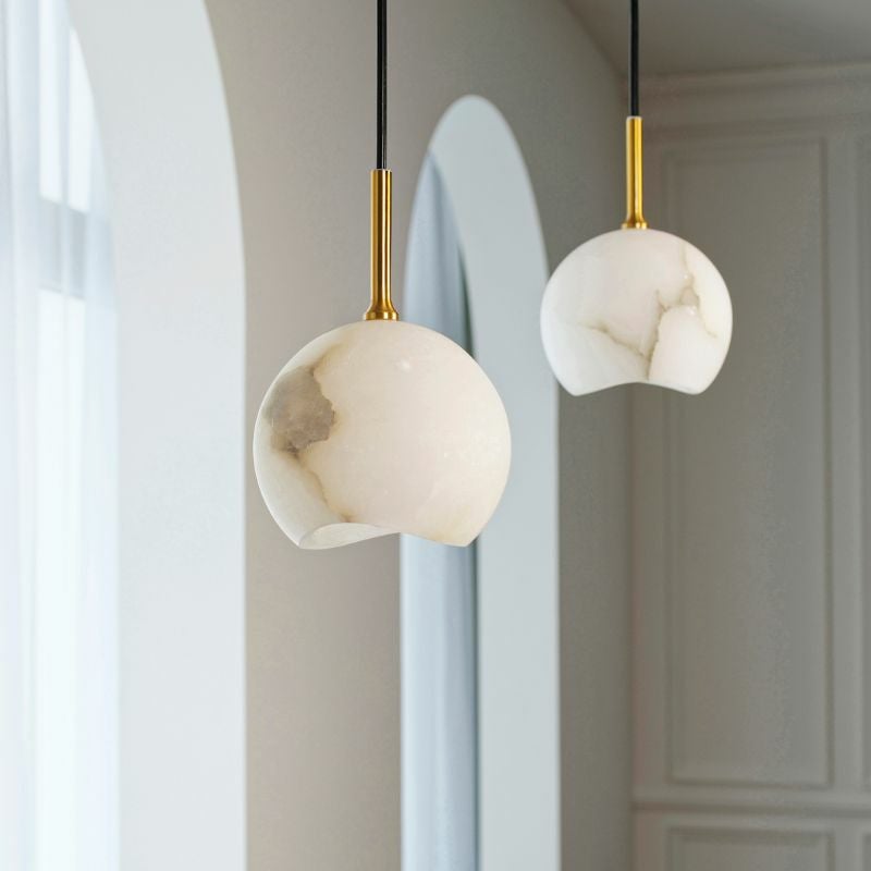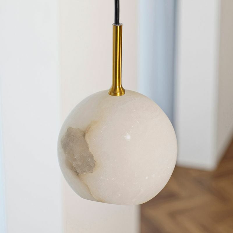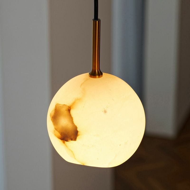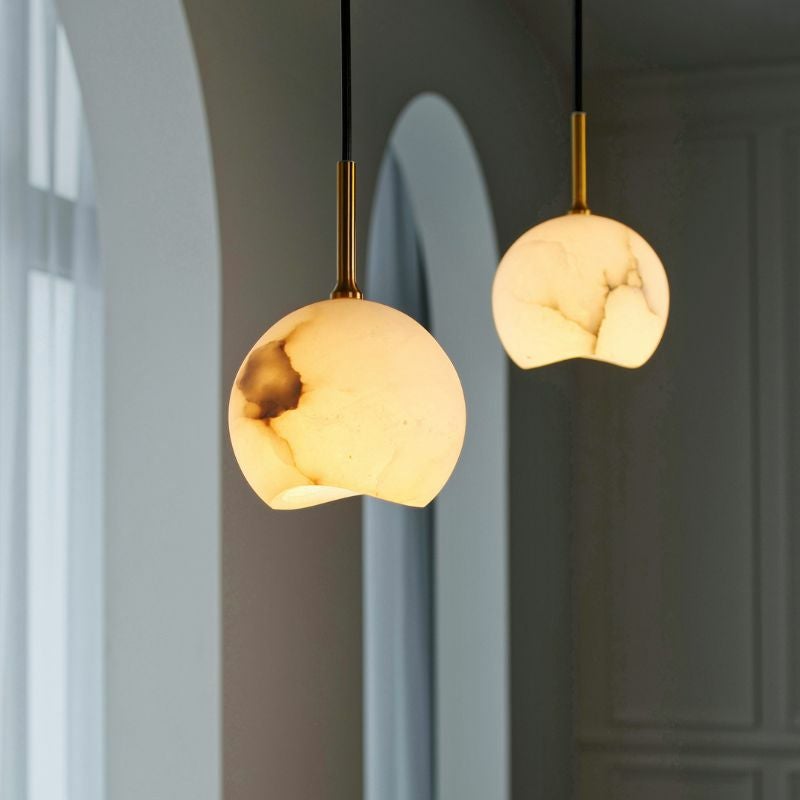 透き通るような白さを持つ鉱物「アラバスター」を使ったシェードが印象的なペンダントランプ「kravia(カルヴィア)」です。