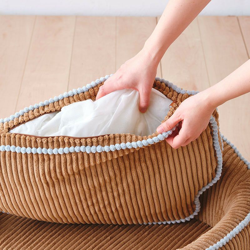 コーデュロイ生地とパイピングの配色が可愛らしいペット用ソファ「MARRON (マロン)」です。2色から選べます。