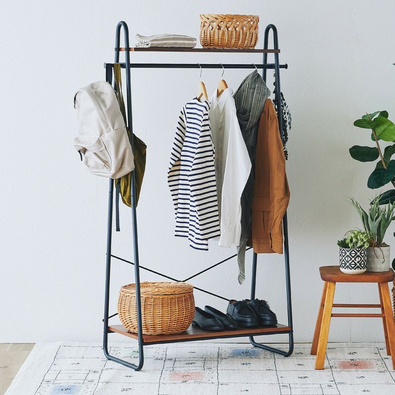 バーハンガーは、収納場所が少ないワンルームや、クローゼットに入りきらなかったアイテムを掛けておくのに便利です。フックや棚があるので、ちょっとしたものを掛けて置ける便利さが魅力です。