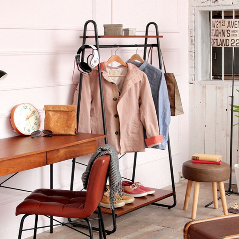 ウォールナット材とスチールを組み合わせたヴィンテージ感漂う家具シリーズ「anthem(アンセム)」の“ハンガーラック”です。 "見せる”と”収納”を兼ね備えたスタイリッシュな収納家具です。