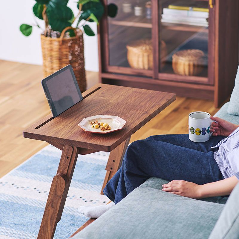 天板には溝があるので、タブレットやスマートフォンを立てかけられます。ソファでくつろぎながらタブレットで映画鑑賞なども存分に楽しめます。