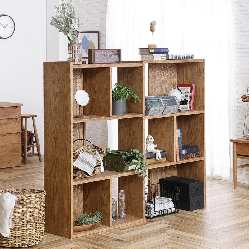 背面は有孔ボード仕上げです。奥行き約31cmとスリムなので、コンパクトな部屋の間仕切り収納としても活躍します。背面の有孔ボードにフックをかけてディスプレイも楽しめます。