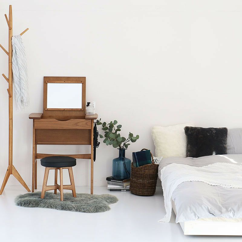 ドレッサーとセットのスツールはヴィンテージ風のクラシカルデザインです。座面のブラックが引き締めてくれます。