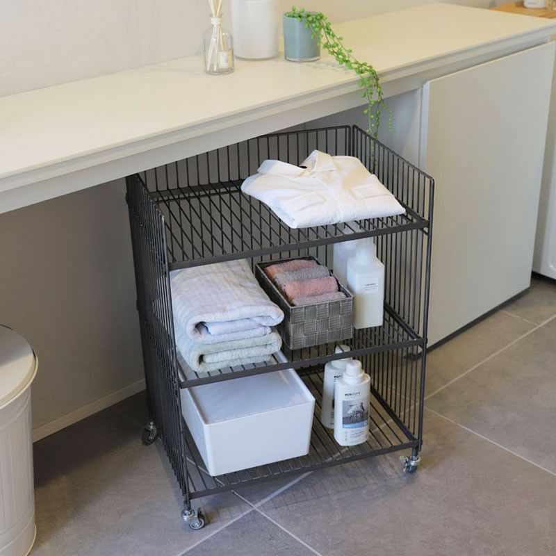 しっかりとしたスチール素材は、重量のある収納にも対応できます。粉体塗装しているので水や湿気に強く、キッチンやランドリースペースでもお使いいただけます。