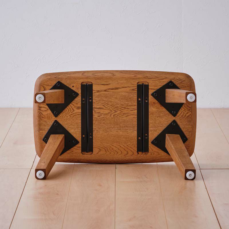 木の質感を楽しめるよう、木表面は塗膜を作らないオイル塗装で仕上げています。経年変化が出やすく、使い込む程に味わい深さが増していく仕上げです。ご自身で簡単にメンテナンスができるので、愛着をもって長くご使用いただけます。