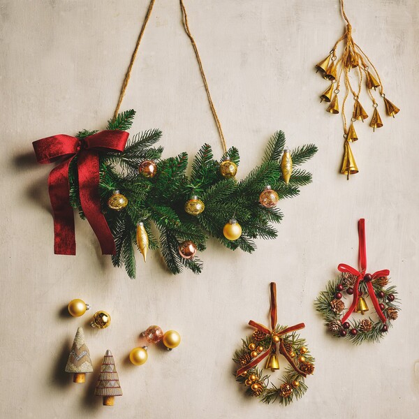 リースやハンガー、キラキラと華やかな