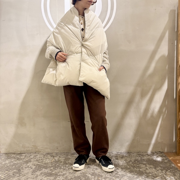 ダウンポンチョマフラー合わせが特におすすめ。